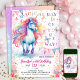 Invitation Unicorn 6e anniversaire Fairy Floral Arc en ciel e