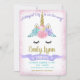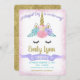 Une journée magique est en route pour la fête d'anniversaire de votre petite licorne ! Une invitation parfaite pour vos couleurs pastel arc-en-ciel et parties scintillant mélangée d'or. De mignons cils et un visage floral de licorne ont vraiment déclenché cette invitation.
