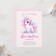 Invitation Unicorn Girl Magique Pastel rose fête d'anniversai