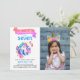 Cette invitation féerique a une mignonne licorne aquarelle colorée dans un magnifique dégradé des couleurs de l'arc-en-ciel du rose au magenta, violet, turquoise et bleu et une photo personnalisable de votre petite princesse licorne. Parfait pour une petite fille ! Le dos est également un dégradé coloré dans les tons rose, bleu et violet. Il a des textes personnalisables que vous pouvez personnaliser et changer l'âge, le nom, et tous les autres éléments de texte. Vous pouvez commander ces invitations en téléchargement numérique ou en format imprimé !