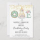 Invitation Unicorne premier anniversaire Gold Aqua rose blanc