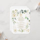 Elégant design de carte avec aquarelle délicate fleurs blanches et feuilles verts, faux formes or, faux or brillant croix or, sur un arrière - plan blanc. Sur le dos bouquet de fleurs blanches sur un arrière - plan blanc. Utilisez l'outil Personnaliser pour ajouter vos informations, modifier les polices, les couleurs de la police. Pour les objets correspondants, veuillez visiter ma collection de la Sainte Communion.