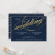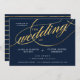 Invitations de mariage marine et or unique et moderne lire "Le mariage de" dans un script or surdimensionné et élégant. Voir la collection pour l'ensemble correspondant !