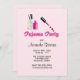 Ajoutez ce que vous voulez au verso, tout le texte et la petite image de ballerine peuvent être personnalisés. Ceci est configuré avec une zone pour ajouter des informations pour les dons en lieu et place de cadeaux pour une fête d'anniversaire. Cela peut être juste une soirée pyjama. Vous pouvez changer ou supprimer la petite ballerine du verso et ajouter plus d'informations sur l'événement ou votre propre image.