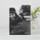 A minimalist black-and-white photo wedding invitation with a full photo front and simple serif text overlay. Features the couple’s names and date on the front, with ceremony details on the back. A modern, timeless choice for contemporary couples. Easily personalize both sides with your own photos and wedding info.