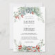 Un design faire-part de mariage pour la saison des fêtes et tout au long de l'hiver, ce design présente des boucles d'aquarelle d'eucalyptus, de pin, de mistletoe et de baies rouges. Le dos de l'invitation correspond aux baies d'un rouge riche. Vous pouvez également modifier la couleur arrière - plan à n'importe quelle autre couleur de votre choix. Le modèle de texte dans ce design utilise un élégant mélange de faces de type serif pour de beaux résultats. Personnalisez le texte avec vos détails mariages.