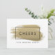 Choisissez cette carte d'invitation en papier 5 x 7 audacieuse et contemporaine pour envoyer des voeux chauds à vos clients cette saison de vacances. Ce design simple et moderne de carte de vacances pour les entreprises dispose d'un trait de peinture or sur une couleur arrière - plan blanche avec le mot "Cheers" dans une police simple noire. Ce modèle de carte d'invitation plate fournit un espace réservé pour le logo de votre entreprise ainsi qu'un message personnalisé à vos clients sur le côté arrière de la carte!