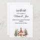 Cette maison de vacances personnalisée en hiver rouge église pins maison sur la colline sauver la date aquarelle invitation est un thème d'invitation parfait pour un couple qui aime le grand extérieur et faire des aventures ensemble pendant qu'ils embarquent leur nouvelle vie aventure ensemble dans le mariage. Personnalisez les détails tels que les messages, la date, l'heure, les mots et les noms des couples.