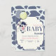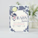 Invitation Vache jaune bleu foncé avec baby shower à ballon