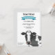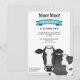 L'illustration originale de Destei d'une jolie vache de couleur noire et blanche regardant vers le spectateur avec les yeux marron. Les couleurs sont dans l'ensemble grises et noires, mais une bannière bleue donne une touche de couleur à l'ensemble. Personnalisez les zones de texte exemples avec les détails de votre événement.