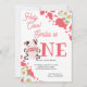 Vache rose motif invitation à la fête d'anniversaire de la vache mignonne, ludique whimsical avec invitation de marguerites pour une fête d'anniversaire sur le thème de la ferme.