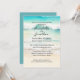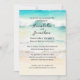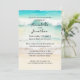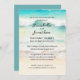 Cette élégante invitation de mariage présente une image de plage en face. La partie inférieure possède une belle plage de sable, avec de l'eau turquoise en haut. Les vagues se brisent à travers le sable sous le soleil. Les informations mariages sont imprimées en noir sur le centre.