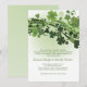 Une charmante composition de rubans verts et de vagues de trèfles multicolores sur fond blanc. Une invitation saisonnière pour toute célébration. La carte est facile à personnaliser avec votre texte, police, couleur de police et choix parmi six types de papier.