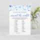 Réponses : 1. I 2. H 3. L 4. K 5. G 6. N 7. E 8. J 9. D 10. C 11.M 12. O 13. F 14. A 15. B......................................................................... Célébrez le charme mondial à votre baby shower avec Watercolor Cute Blue Hearts 💙 Valentine Chéri Dire Bébé autour du monde Jeu! Parfait pour un 👶 de fête de bébé garçon, cette activité ludique et éducative met les invités à faire correspondre le mot "bébé" à sa langue ou son pays d'origine 🌍 🍼. Doté d'un design adorable avec 🎨 coeur bleu aquarelle, c'est une façon engageante de divertir les invités et d'allumer des conversations intéressantes. Facile à imprimer 🖨️ et personnaliser, c’est un ajout unique à votre journée spéciale! 🎉 ✨ 💙 📝