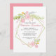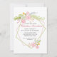 Belle fête de Saint Valentin à fleurs roses invitations pour un brunch élégant ou un déjeuner de dames avec des amis. Joli cadre hexagone avec fleurs de printemps d'hibiscus rose et jonquille jaune avec un spray botanique vert.