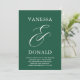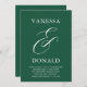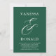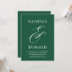 Faire-part de mariage moderne avec un agencement simple et minimal avec vos noms et une élégante esperluette dans un grand format au-dessus de vos détails de l'événement. Le thème de couleur est vert émeraude et peut être modifié dans l'outil d'édition de conception.