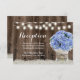 Cartes de Réception de Mariage avec Lumières de Chaîne en Pot Mason d'Hortensia Bleu Rustique.