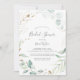 Cette invitation généreuse à la verdure et à la nuptiale en feuille d'or est parfaite pour un wedding shower moderne. L'élégant design botanique présente des eucalyptus aquarellés clairs et aquarellés, agrémentés de feuilles de parties scintillant en or blanc.