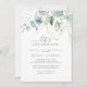Cette généreuse verdure et feuille d'or fêtons l'invitation est parfait pour une fête de fiançailles moderne, mariage après la fête, la retraite, la remise des diplômes ou tout événement heureux. L'élégant design botanique présente des eucalyptus aquarellés clairs et aquarellés, agrémentés de feuilles de parties scintillant en or blanc.