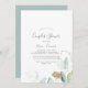Cette invitation à la douche aux couples en feuilles d'or et verdure est parfaite pour une wedding shower moderne. L'élégant design botanique présente des eucalyptus aquarellés clairs et aquarellés, agrémentés de feuilles de parties scintillant en or blanc.