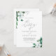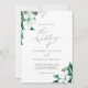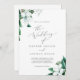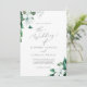 Ce faire-part de mariage de verdure boisée est parfait pour un été ou un mariage de automne. Le design boho moderne comprend des feuilles d'eau vert émeraude, sauge et olive luxuriants et des botaniques avec des sprigs de fleurs blanches élégantes.