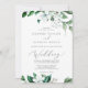 Cette végétation boisée, tout en un faire-part de mariage, est parfaite pour un été ou un mariage de automne. Le design boho moderne comprend des feuilles d'eau vert émeraude, sauge et olive luxuriants et des botaniques avec des sprigs de fleurs blanches élégantes. Enregistrez du papier en incluant les détails au verso du faire-part de mariage plutôt que sur une carte de boîtier séparée. Inclure également les informations RSVP si votre invité répondra par voie électronique (facultatif).