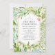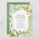 Invitation de communion sainte à la verdure tendance avec cadre géométrique or et lave à l'aquarelle verte sauge à rebours conçu pour être rapidement et facilement customisé à votre événement spécifique.