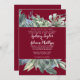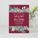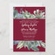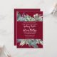Ce faire-part de mariage à l'allure bordeaux et verdoyant est parfait pour un mariage élégant. L'aménagement moderne de l'automne ou de l'hiver offre une atmosphère de vacances rustique, avec une élégante verdure d'aquarelle et des feuilles d'oliviers foncés sur un riche arrière - plan bordeaux.