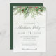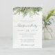 Belle invitation de Noël pour la saison des Fêtes, avec des illustrations d'aquarelle botanique peintes à la main de la verdure hivernale, branches de pin et d'épinette, cônes et baies sèches.