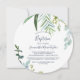 Cette carte d'invitation au baptême ronde et verdoyante d'été est parfaite pour un élégant baptême de bébé du milieu de l'été. Le design botanique présente un agencement luxuriant d'eucalyptus couleur aquarelle peint, de verdure et de feuilles verts.
