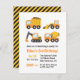 Invitation Véhicules de construction et Camions Garçons Anniv