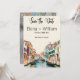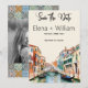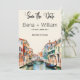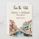La carte "Save the Date" présente une scène pittoresque de Venise, en Italie, magnifiquement rendue à l'aquarelle sur le devant. Sur fond de canaux sereins et d'architecture vénitienne charmante, l'essence de l'attrait romantique de la ville est capturée dans chaque coup de pinceau. Les gondoles glissent gracieusement le long des eaux tranquilles, tandis que les bâtiments historiques avec leurs façades ornées se dressent sous le chaud soleil méditerranéen.