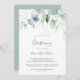 Cette invitation au baptême de la verdure et de la feuille d'or est parfaite pour un baptême de bébé moderne. L'élégant design botanique présente des eucalyptus aquarellés clairs et aquarellés, agrémentés de feuilles de parties scintillant en or blanc.