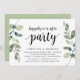 Carte d'invitation sur le thème de la verdure moderne rustique Eucalyptus, écriture noire (avec titre de carte : fête pour toujours heureux). C'est parfait pour votre réception de mariage intime / fête de célébration après le mariage. Ajoutez vos détails dans une police / lettrage noir assorti.