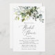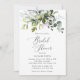 Invitations amis et famille dans le style et donner le ton pour votre journée spéciale avec cette charmante invitation à la douche nuptiale. Le design présente des feuilles d'eucalyptus et de la verdure sur arrière - plan blanc.