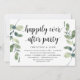 Moderne Rustique Verdure Eucalyptus, Carte d'invitation thématique noir script (avec titre de carte: fête pour toujours heureux). C'est parfait pour votre réception de mariage elopement / fête de célébration post-mariage. Ajoutez vos détails dans la même police / lettrage noir.