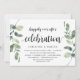 Carte d'invitation thématique moderne rustique avec eucalyptus et écriture noire (avec titre de carte : Rien de fantaisiste, juste de l'amour). Elle est parfaite pour votre réception de mariage intime / fête de célébration post-mariage. Ajoutez vos détails avec une police / lettrage noir assorti.