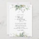 Invitations amis et famille dans le style et donner le ton pour votre journée spéciale avec ce faire-part de mariage charmant. Le design présente des feuilles d'eucalyptus et de la verdure sur arrière - plan blanc.