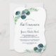 Cette première invitation à la communion d'eucalyptus et sa verdure luxuriante est parfaite pour un événement jardin élégant. Le design botanique moderne présente de magnifiques eucalyptus bleu aquarelle et des feuilles verts.