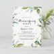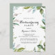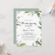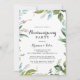 Cette calligraphie verdoyante invitation à la fête de réchauffement domestique est parfait pour une famille moderne et amis fête de réchauffement domestique. Le design est composé de feuilles tropicaux à dominante verte avec une touche de fleurs blanches roses.