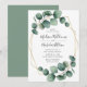 Elégante et moderne faire-part de mariage avec vos détails mariages entourée d'un cadre géométrique de feuille d'or imitant avec des feuilles aquarelles ornant les coins. L'envers est doté d'un arrière - plan vert solide. Conçu pour coordonner avec notre collection de mariage Modern Greenery.