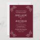 Cette magnifique invitation de mariage simple mais élégante présente un cadre de feuilles dessinés en bordure du texte de l'invitation. Veuillez me contacter si vous désirez de l'aide pour customiser la partie texte.