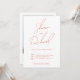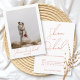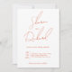 Moderne et whimiscal Verona coucher de soleil orangé script calligraphie blanc minimaliste mariage de automne Invitation. Ce design est composé d'un arrière - plan blanc et d'une calligraphie en écriture blanche. Les noms du couple, élégamment mis en valeur dans cette façade fluide, apportent une touche personnelle d'art et de romantisme, créant une première impression mémorable pour vos invités. Le dos est orné d'une photo du couple.