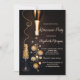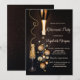Bouteille et verre de champagne élégants avec décoration de Noël sur fond sombre.