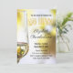 Cette invitation élégante pour une fête de 55e anniversaire présente du vin blanc dans un verre et un fond bokeh aux tons dorés. Tous les détails de la fête sont sur le devant. Le dos est un simple motif géométrique en diamant dans une couleur capturée à partir de la photo avant. Remplissez les champs de texte du modèle sous personnaliser avec vos informations.