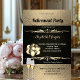 Invitation Verre à vin en or élégant, ballons, fête de retrai
