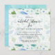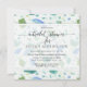 "Terrazzo Blue Green Aqua Modern Bridal Shower Invitation," a été peint à la main en aquarelle acrylique sur toile pour un design abstrait très moderne et élégant. Couleur de verre de mer de bleu, vert, aqua et blanc pour une palette de couleurs de plage relaxante et le thème inspiré. Art par Audrey Jeanne Roberts, artiste et designer de renommée internationale, copyright.