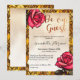 Cette invitation personnalisée est décorée sur le thème de la Beauté et de la Beauté. La bordure est ornée d'un doré jaune, d'un motif romantique en vitrail, avec un rose en vitrail placé en haut à gauche et en bas à droite. L'arrière - plan est un motif de dégradé d'or passé. La phrase classique Beauté et la Bête, "Be our Guest" apparaît en haut dans une police de cuivre, à côté de l'une des roses rouges.