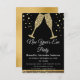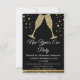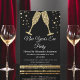 Carton d'invitation à la soirée du Nouvel An 2024 avec verres à champagne diamantés or. Le carton d'invitation à la soirée du Nouvel An or et noir est parfait pour une soirée du Nouvel An moderne.