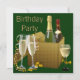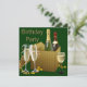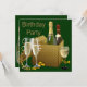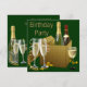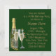 Carton d'invitation pour fête d'anniversaire avec verres à vin de champagne en or vert et numéro au choix.